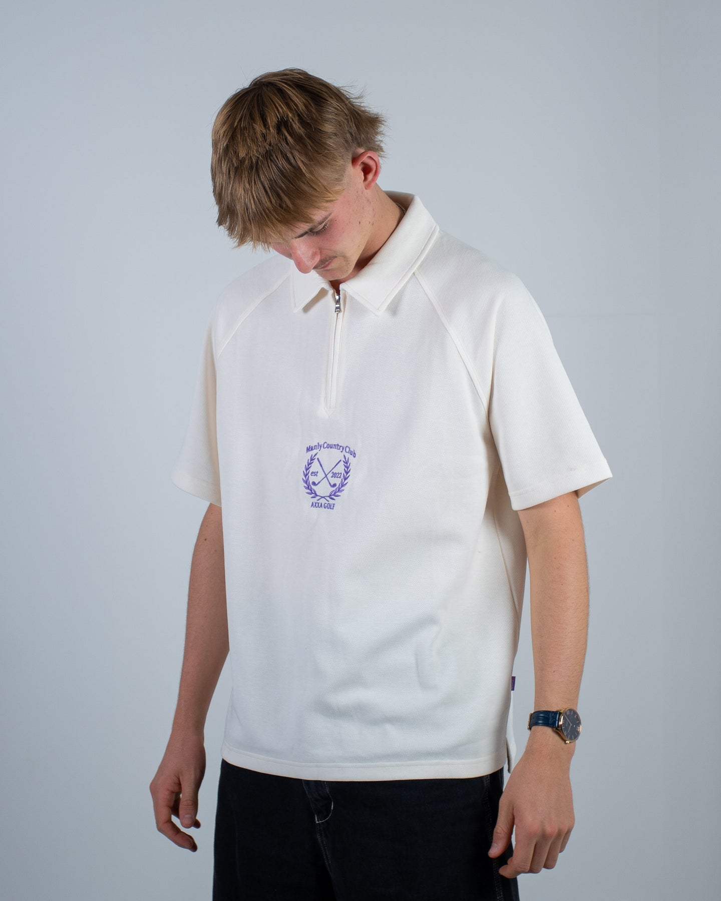 The Manly Country Club Quarter-Zip brings an old-school silhouette into a new era — where style matters as much as your swing. With a soft beige tone and minimalist front hit, it’s built for players who want to look sharp without trying too hard.